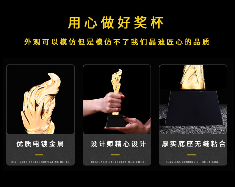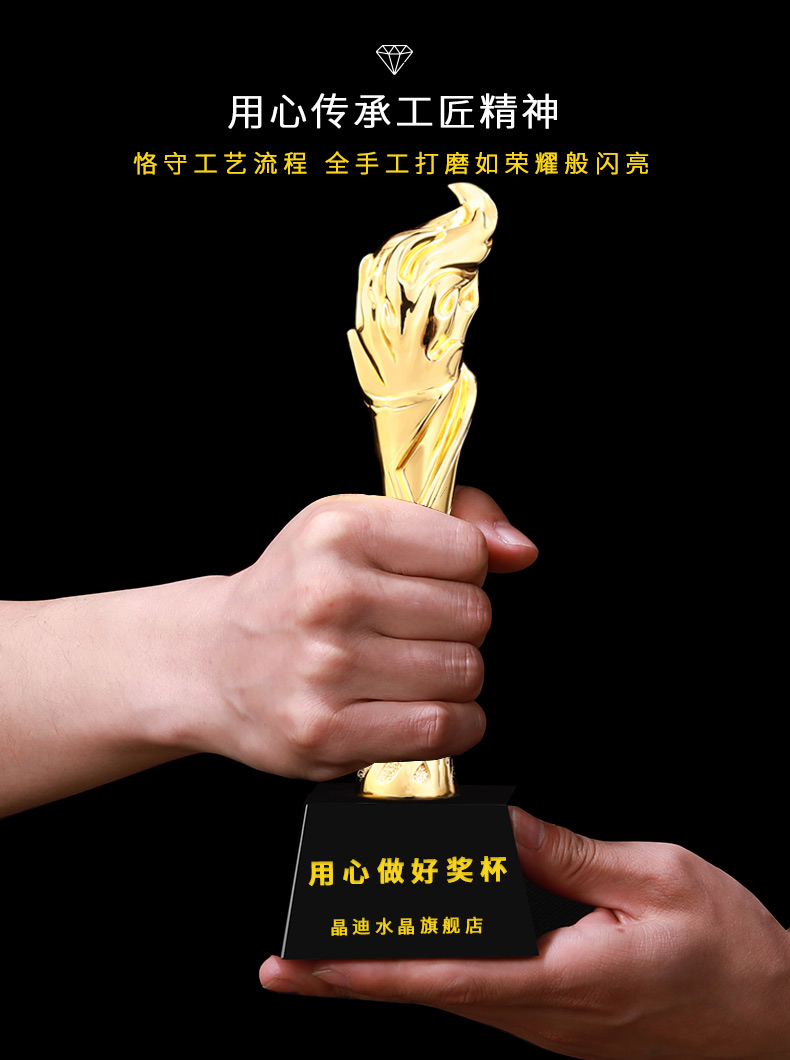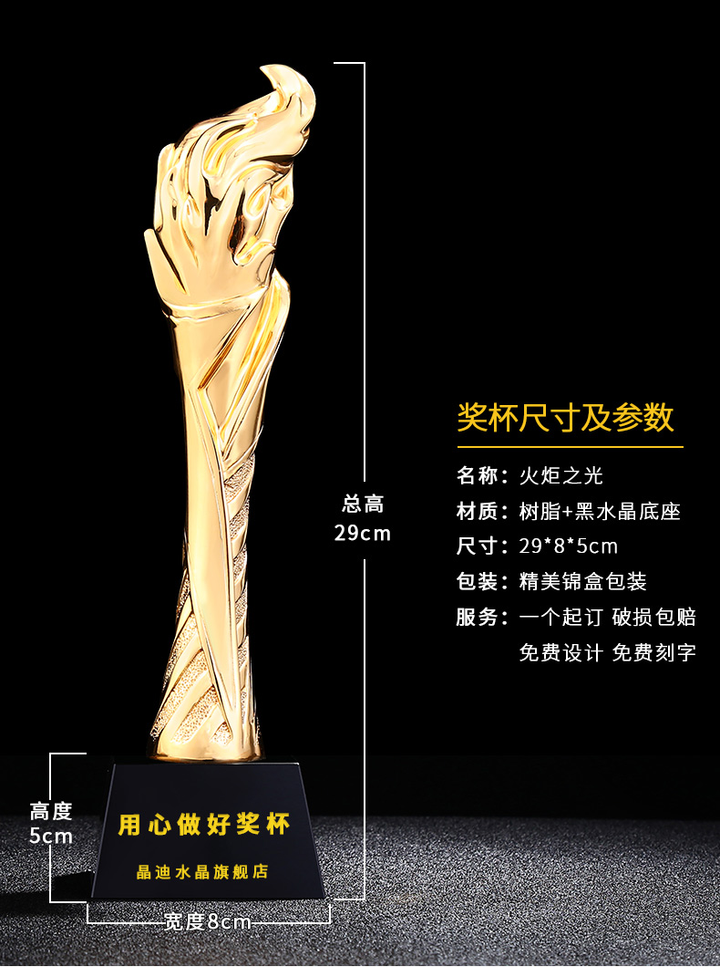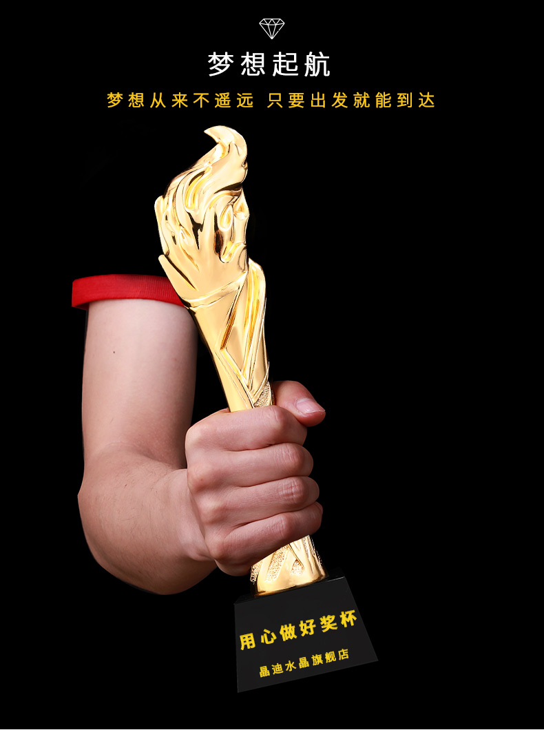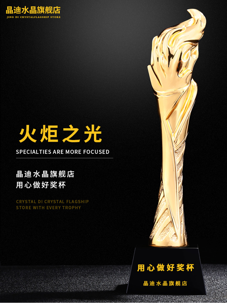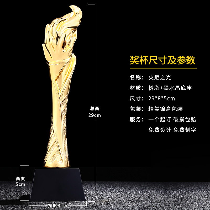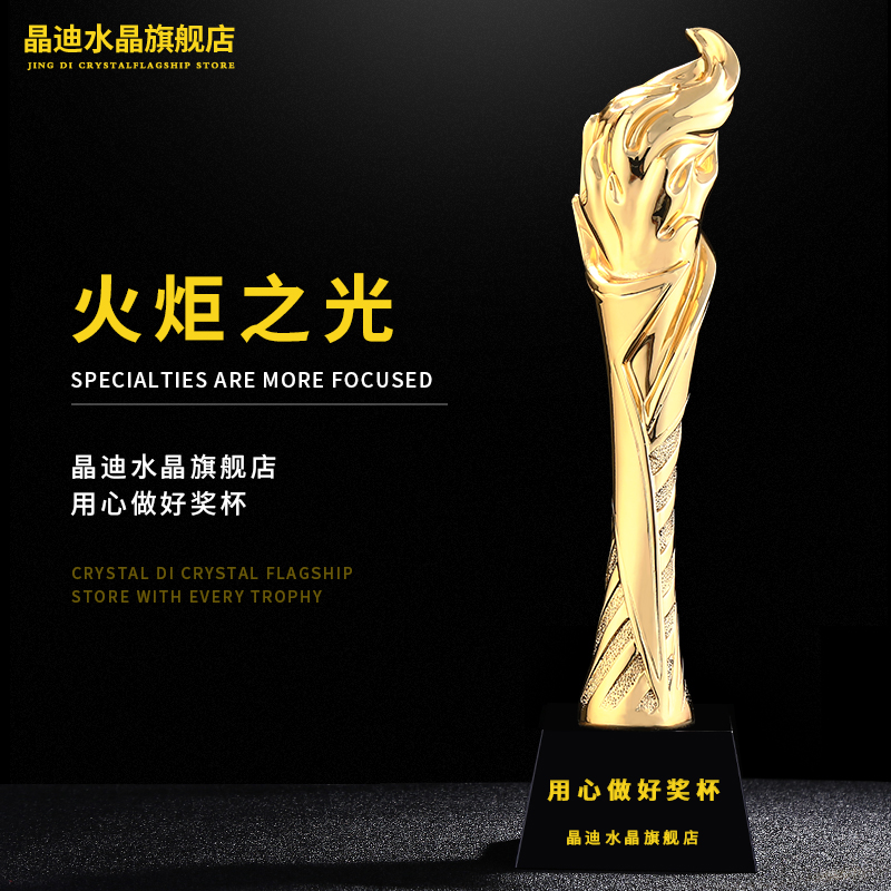 火炬之光 鍍金獎杯 創意獎杯專業定制 企業員工頒獎禮品訂制
