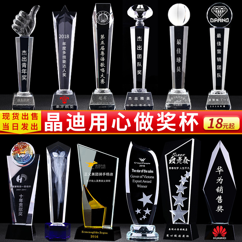 獎杯定制獎牌定做大拇指五角星運動會紀念品創意制作刻字水晶獎杯