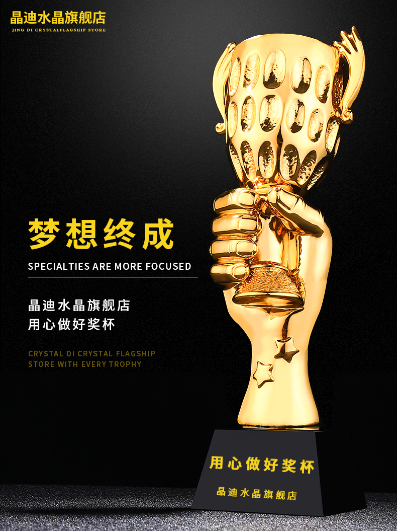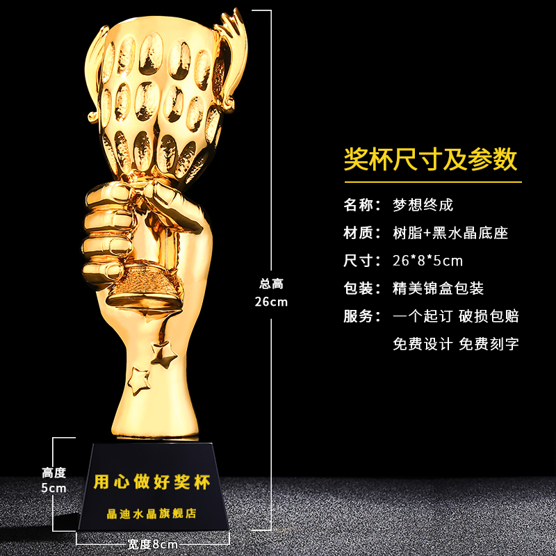 夢想終成 鍍金獎杯 創意獎杯專業定制 企業員工頒獎禮品訂制