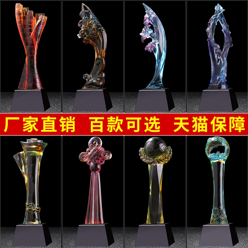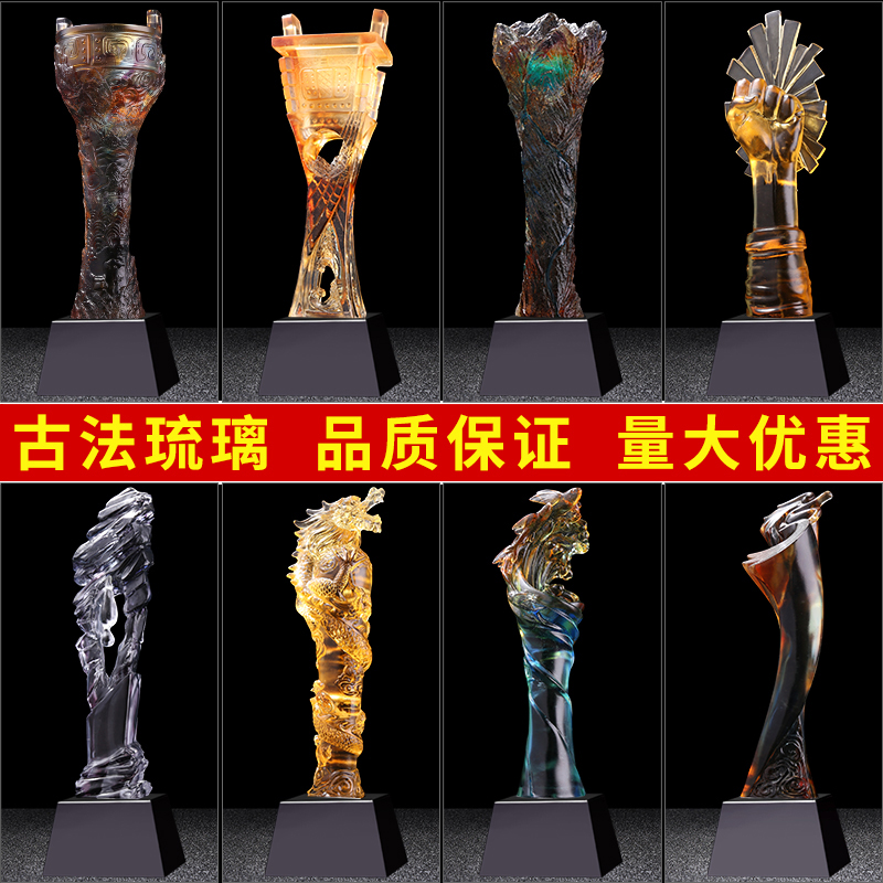 水晶獎杯定制定做公司年會創意比賽頒獎紀念品制作琉璃刻字獎杯
