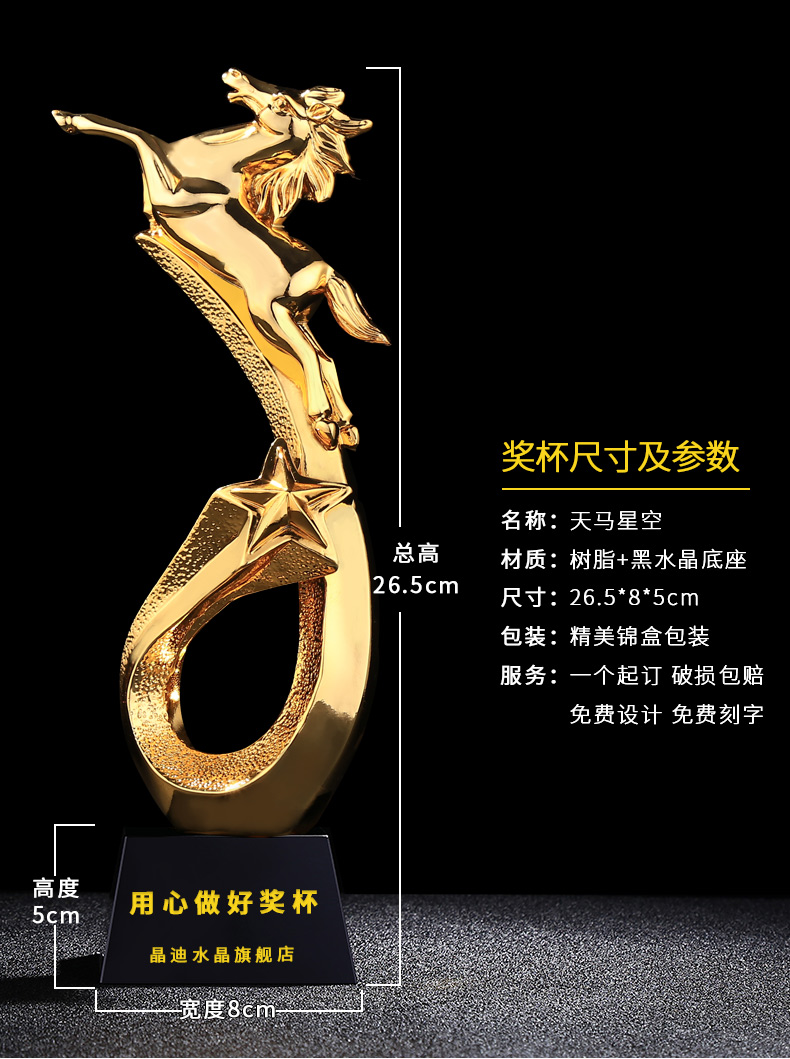 天馬星空 鍍金獎杯 創(chuàng)意獎杯專業(yè)定制 企業(yè)員工頒獎禮品訂制