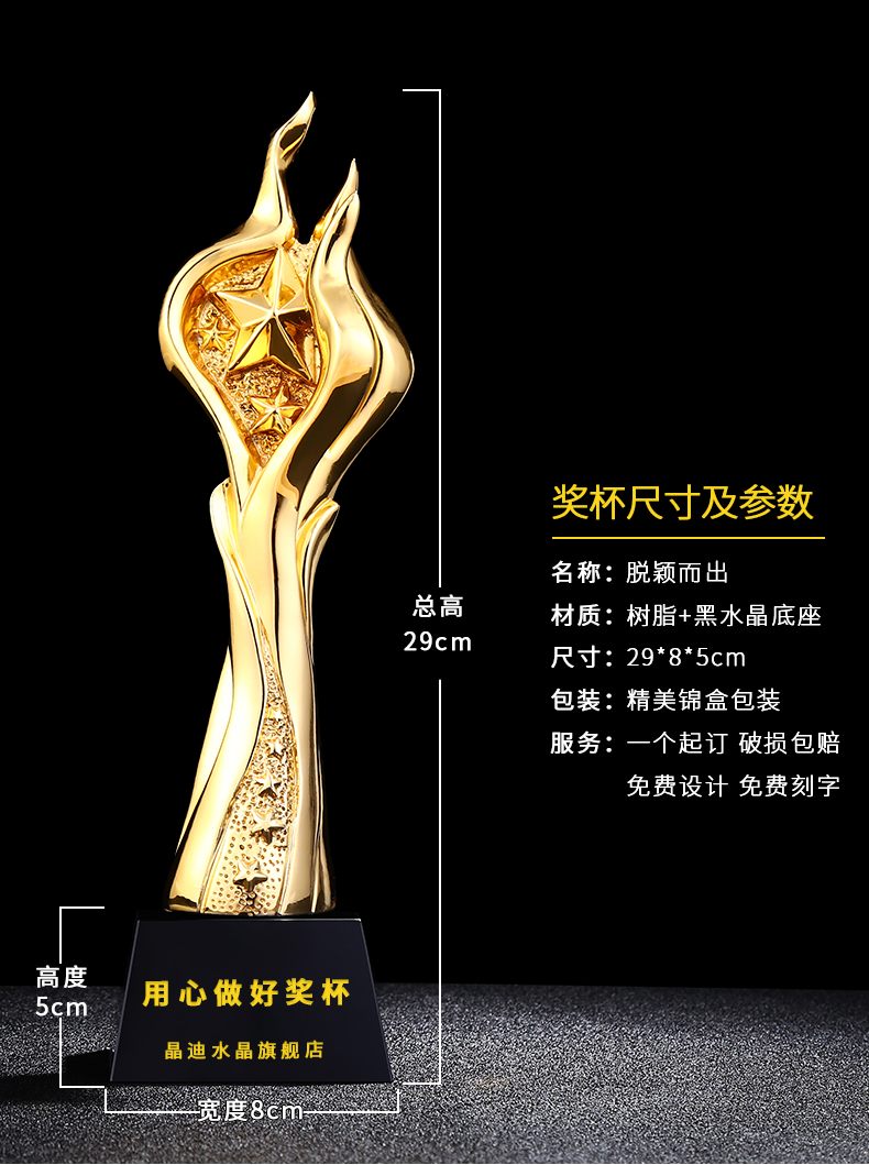 脫穎而出 鍍金獎杯 創意獎杯專業定制 企業員工頒獎禮品訂制