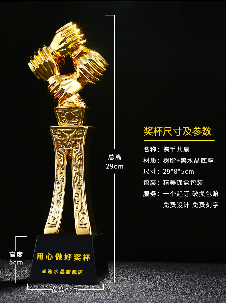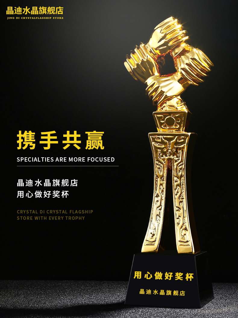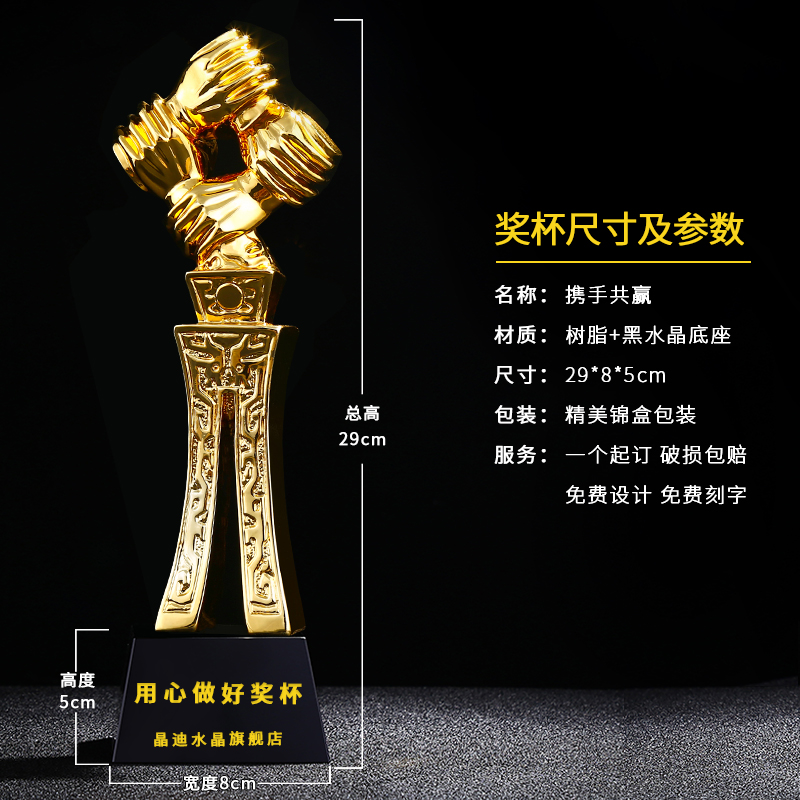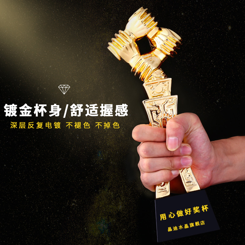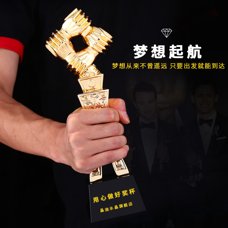 攜手共贏 鍍金獎杯 創意獎杯專業定制 企業員工頒獎禮品訂制