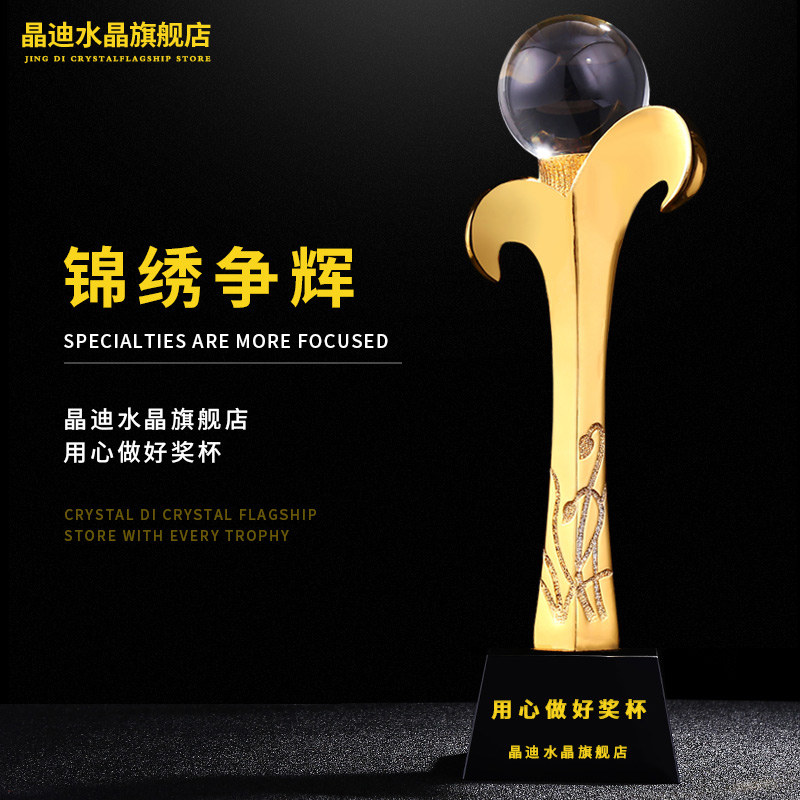 錦繡爭輝 鍍金獎杯 創意獎杯專業定制 企業員工頒獎禮品訂制