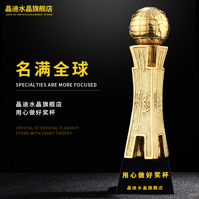 名滿全球 鍍金獎杯 創意獎杯專業定制 企業員工頒獎禮品訂制