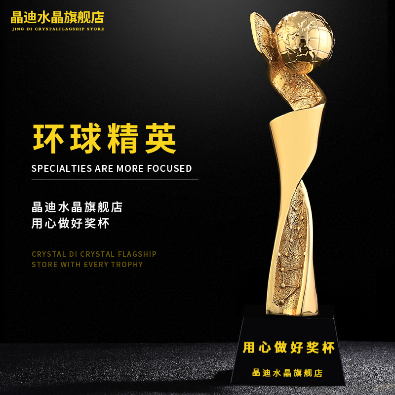 環球精英 鍍金獎杯 創意獎杯專業定制 企業員工頒獎禮品訂制