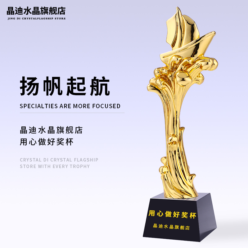 揚帆起航樹脂鍍金獎杯一帆風順精英年會企業優秀員工教師獎杯定制