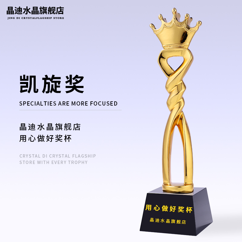 凱旋獎鍍金樹脂獎杯定制創意愛心奉獻皇冠心形刻字獎杯定做